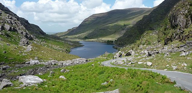 The Amazing Gap of Dunloe is one of the top tourist attractions in Ireland. It is about 11 km from north to south. Within it are five lakes: Coosaun Lough, Black Lake, Cushnavally Lake, Auger Lake, and Black Lough.